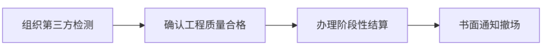 1.建设单位应及时对施工单位已完成的工程进行验收,并在验收合格的情况下进行结算,完成结算后及时要求施工单位撤场,以免影响整个项目的工程进度。