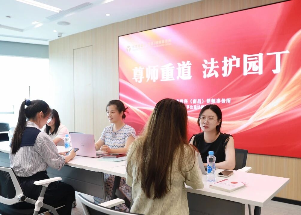 为向广大教师致以节日敬意、传递法治关怀,2025年9月10日下午,北京市盈科(南昌)律师事务所(以下简称“盈科南昌”)圆满举办了“尊师重道,法护园丁”主题教师节公益法律咨询日活动。本次活动由盈科南昌公益委员会组织发起,面向全市在职及退休教师,活动现场不仅有孙怀香律师、李尧君律师为教师们提供 “一对一” 免费法律咨询服务,还开设了普法专题讲座;同时,盈科南昌特别为到场教师准备了普法书籍与美味茶点,让法治温暖与节日关怀相得益彰。